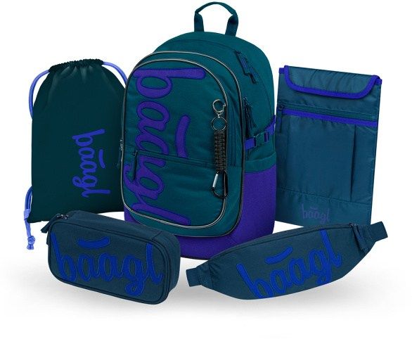 BAAGL SET 5 Core Logo modrý: batoh, penál, sáček, ledvinka, obal na notebook GRS