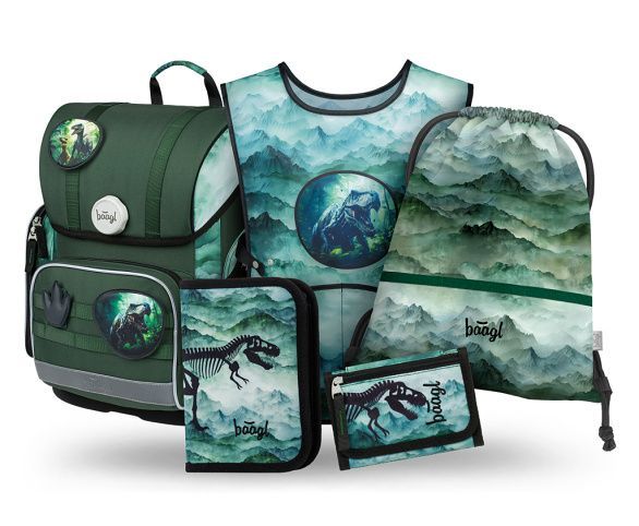 BAAGL SET 5 Ergo Dino: aktovka, penál, sáček, zástěra, peněženka