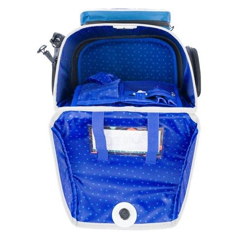 Uvnitř aktovky je průhledná kapsa s rozvrhem a vnitřní organizér umožňující rovnoměrné rozložení hmotnosti.