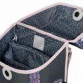 Uvnitř aktovky je průhledná kapsa s rozvrhem a vnitřní organizér umožňující rovnoměrné rozložení hmotnosti.
