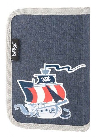 ŠKOLNÍ PENÁL KLASIK PIRÁTI Klasický jednochlopňový penál s motivem pirátů na přední straně.