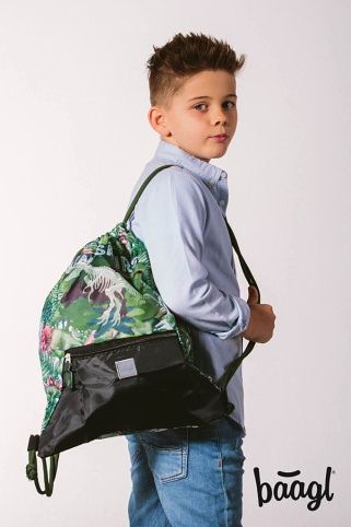 SÁČEK DINOSAURUS Sáček na cvičky nebo přezůvky v zelené barvě.