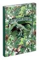 DESKY NA ŠKOLNÍ SEŠITY DINOSAURUS Ochranné desky na úschovu sešitů či jiných dokumentů, včetně vnitřní klopy proti vypadnutí, zajištěné gumičkou.