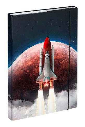 DESKY NA ŠKOLNÍ SEŠITY A4 SPACE SHUTTLE Ochranné desky na úschovu sešitů či jiných dokumentů, včetně vnitřní klopy proti vypadnutí, zajištěné gumičkou.