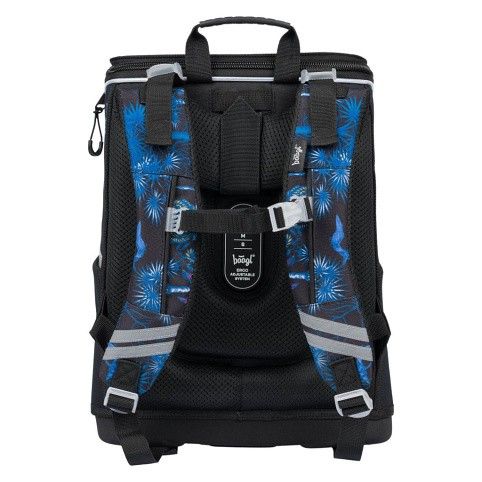 Uvnitř aktovky je průhledná kapsa s rozvrhem a vnitřní organizér umožňující rovnoměrné rozložení hmotnosti, doplněný gumičkou pro fixaci.