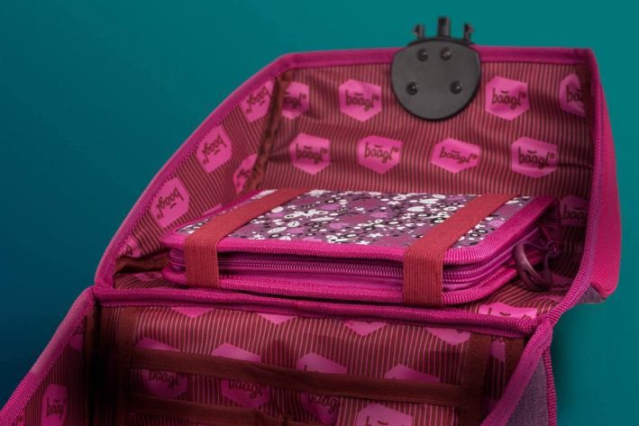 Školní aktovka s vyztuženým tělem, vnitřním organizérem a třemi oddělenými kapsami a zapínáním na kvalitní přezku.