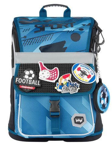Na klopu přední kapsy můžete libovolně připevňovat odznáčky, které jsou k aktovce jako dárek.