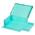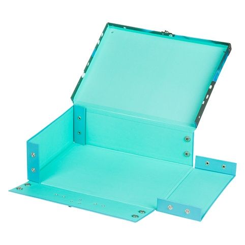 Skládací kufřík z pevného laminovaného papíru s okovanými rohy.
