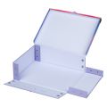 • Skládací kufřík z pevného laminovaného papíru s okovanými rohy.