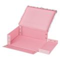 Skládací kufřík z pevného laminovaného papíru s okovanými rohy.