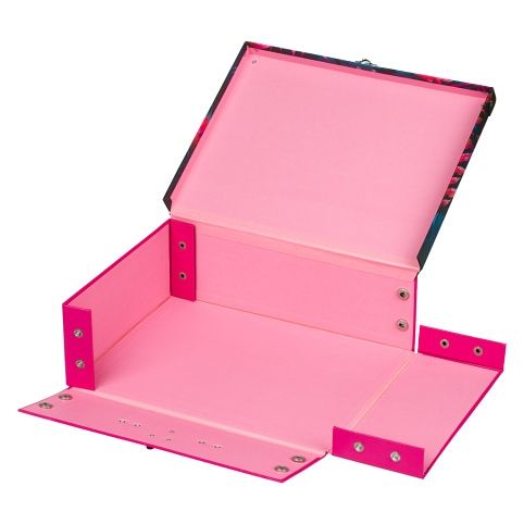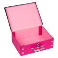 • Skládací kufřík z pevného laminovaného papíru s okovanými rohy.