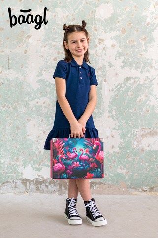 BAAGL Skládací školní kufřík Plameňáci s kováním