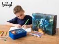 • Skládací kufřík z pevného laminovaného papíru s okovanými rohy.