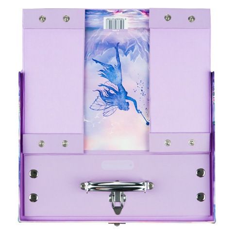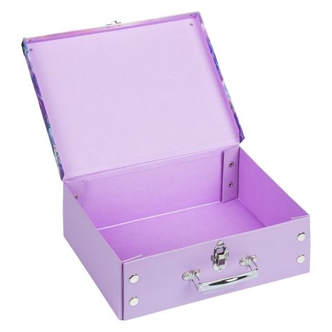 Skládací kufřík z pevného laminovaného papíru s okovanými rohy.