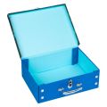• Skládací kufřík z pevného laminovaného papíru s okovanými rohy.