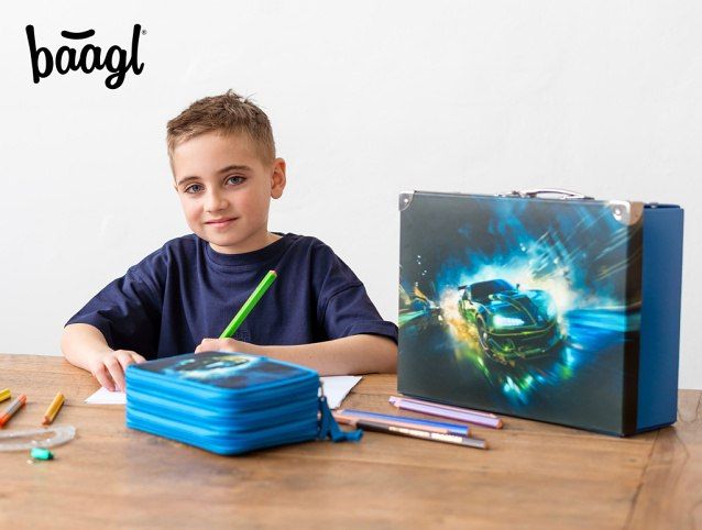 BAAGL Skládací školní kufřík Závodní auto s kováním