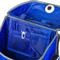 Uvnitř aktovky je průhledná kapsa s rozvrhem a vnitřní organizér umožňující rovnoměrné rozložení hmotnosti.