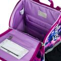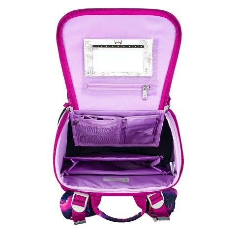 • Uvnitř aktovky je průhledná kapsa na rozvrh a vnitřní organizér umožňující rovnoměrné rozložení hmotnosti, doplněný gumičkou pro fixaci.