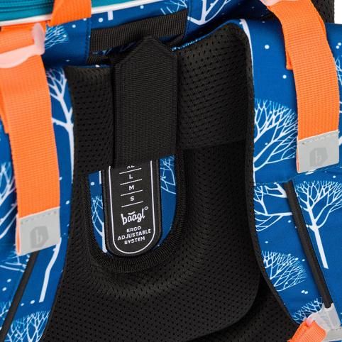 Posuvný zádový systém ERGO ADJUSTABLE SYSTEM umožňuje nastavení optimální polohy popruhů vzhledem k výšce dítěte.