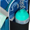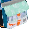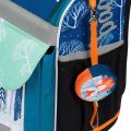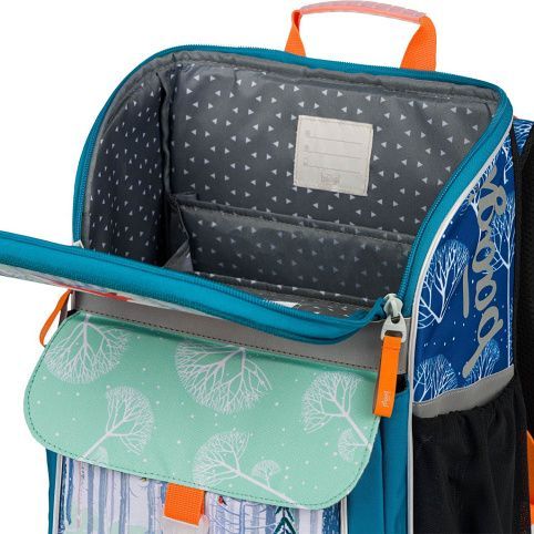 Uvnitř aktovky je průhledná kapsa s rozvrhem a vnitřní organizér umožňující rovnoměrné rozložení hmotnosti, doplněný gumičkou pro fixaci.