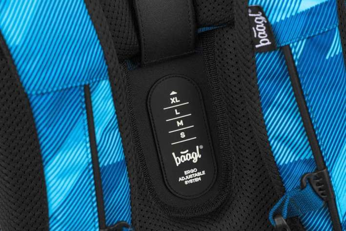 Posuvný zádový systém ERGO ADJUSTABLE SYSTEM umožňuje nastavení optimální polohy popruhů vzhledem k výšce dítěte.
