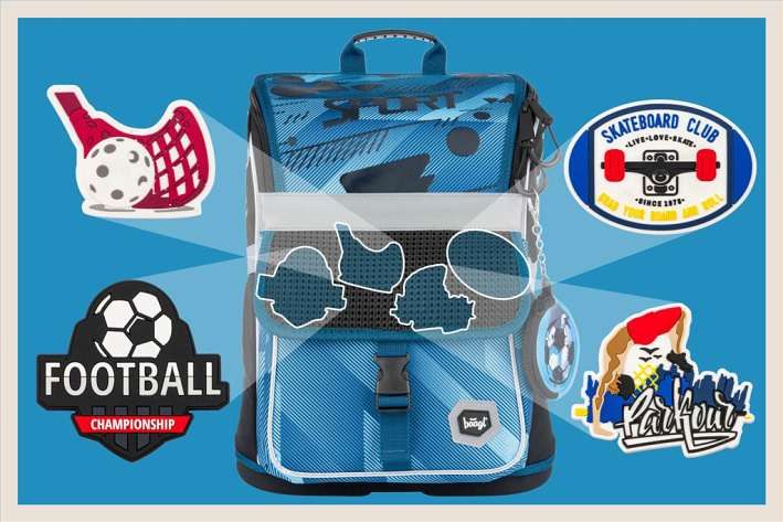 Na klopu přední kapsy můžete libovolně připevňovat odznáčky, které jsou k aktovce jako dárek.