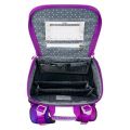 Uvnitř aktovky je průhledná kapsa s rozvrhem a vnitřní organizér umožňující rovnoměrné rozložení hmotnosti, doplněný gumičkou pro fixaci.