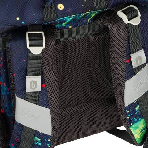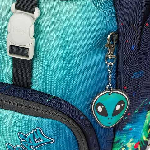 Batoh vyrobený z recyklovaného a voděodolného materiálu je opatřen řadou reflexních prvků pro maximální bezpečnost dítěte i za snížené viditelnosti.