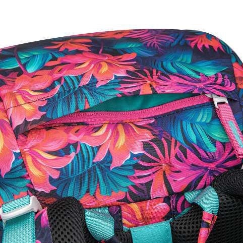 Víko batohu je vybaveno praktickou kapsou na zip a intuitivním magnetickým zapínáním, které se samo zacvakne po přiklopení. Otevírání i zavírání je tak snadné, že jej bez problémů zvládne i prvňáček.