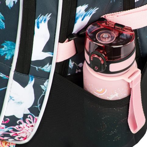 Boční kapsy z pevné materiálu na láhev na pití či jiné drobnosti.