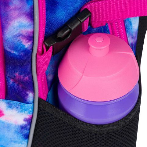 Boční kapsy z pevné síťoviny na láhev na pití či jiné drobnosti.