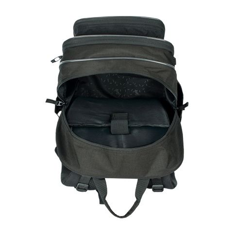 Tři samostatně uzavíratelné komory s vnitřním organizérem a kapsou na 15palcový notebook či tablet. Tento vnitřní organizér umožňuje rovnoměrné rozložení hmotnosti.