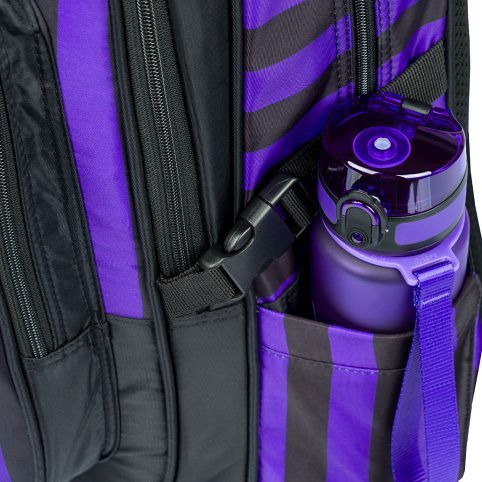 • Boční kapsy z pevného materiálu, které jsou vhodné pro jednu z našich láhví na pití.