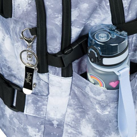 • Boční kapsy z pevné materiálu, které jsou vhodné pro jednu z našich lahví na pití.