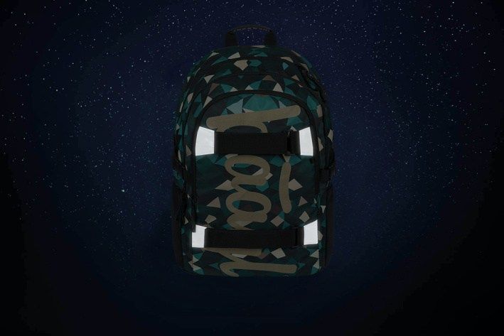 Na přední komoře batohu jsou umístěné dva popruhy na uchycení skateboardu.