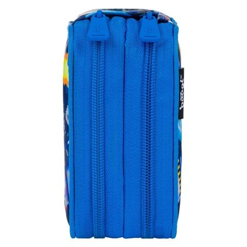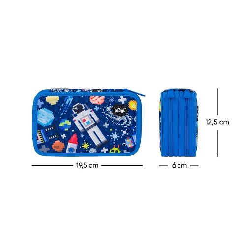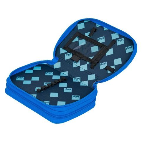 Dvoupatrový školní penál se zesíleným hřbetem pro snadnější manipulaci.