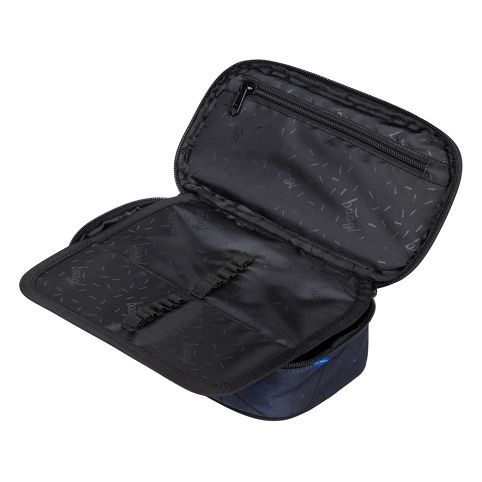 Kompaktní penál na zip s prostornou hlavní komorou a dvojitou výklopnou chlopní nabízí dostatek prostoru pro psací potřeby i drobnosti.