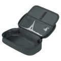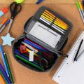 Kompaktní penál na zip s prostornou hlavní komorou a dvojitou výklopnou chlopní nabízí dostatek prostoru pro psací potřeby i drobnosti.