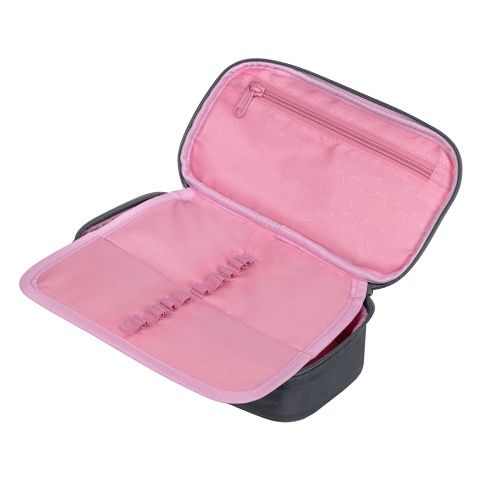 Kompaktní penál na zip s prostornou hlavní komorou a dvojitou výklopnou chlopní nabízí dostatek prostoru pro psací potřeby i drobnosti.