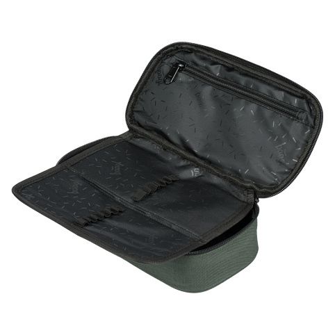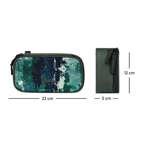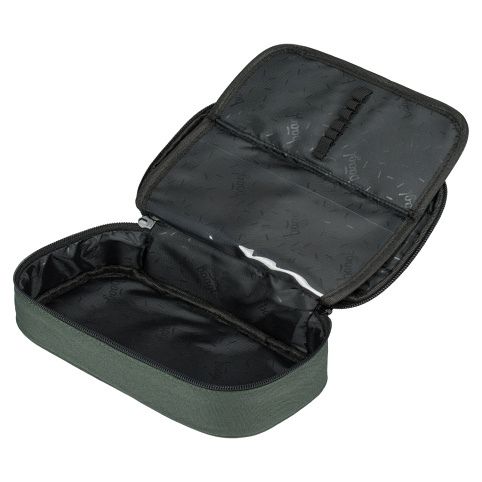 Kompaktní penál na zip s prostornou hlavní komorou a dvojitou výklopnou chlopní nabízí dostatek prostoru pro psací potřeby i drobnosti.