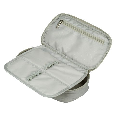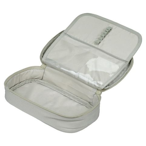 Kompaktní penál na zip s prostornou hlavní komorou a dvojitou výklopnou chlopní nabízí dostatek prostoru pro psací potřeby i drobnosti.