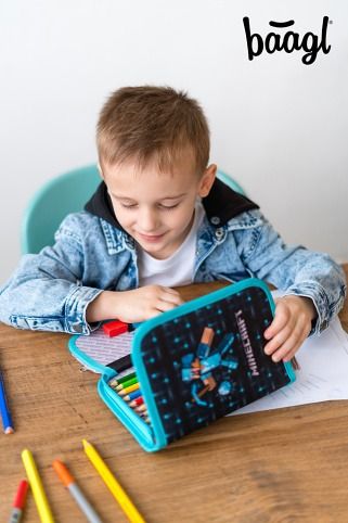 BAAGL Školní penál jednopatrový Minecraft Blue Axe
