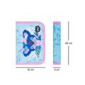 Klasický školní jednopatrový penál s dvěma chlopněmi.
