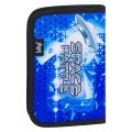 Klasický školní jednopatrový penál s dvěma chlopněmi.