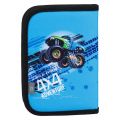 Klasický školní jednopatrový penál s dvěma chlopněmi.