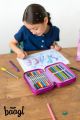 • Extra prostorné třípatrové penály na všechny psací potřeby.