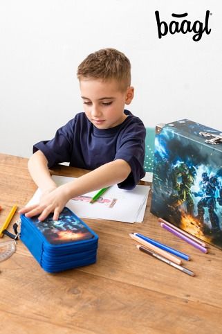 • Extra prostorné třípatrové penály na všechny psací potřeby.