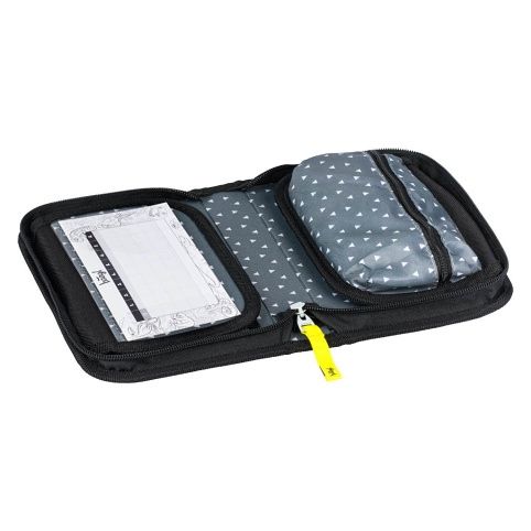 Uvnitř aktovky je průhledná kapsa s rozvrhem a vnitřní organizér umožňující rovnoměrné rozložení hmotnosti.