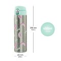 Díky dvoustěnné konstrukci z nerezové oceli a objemu 450 ml udrží láhev horký nápoj až 12 hodin, zatímco studené nápoje zůstanou osvěžující až 24 hodin.