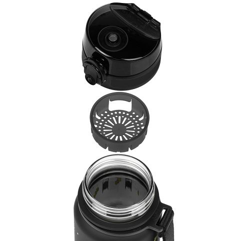 Uzamykatelné víčko nepropustí ani kapku nápoje a zaručuje jednoduché a intuitivní používání. Součástí láhve je i sítko, díky kterému můžete láhev použít i na limonády s ovocem nebo čaj (materiál je vhodný i pro horké nápoje). K láhvi je připevněné také poutko pro pohodlné nošení v ruce.
